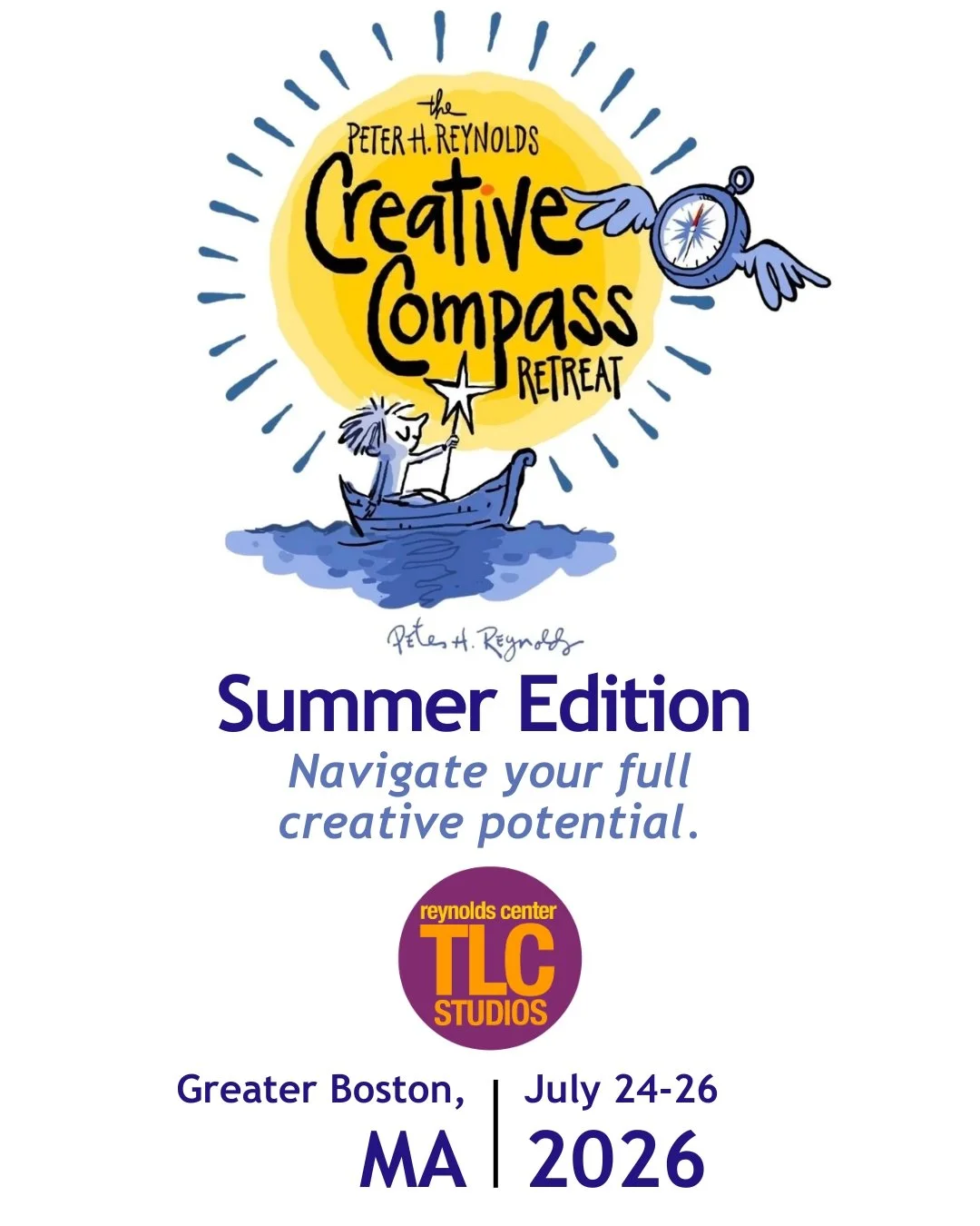 We’re excited to announce the next Creative Compass Retreat - Summer Edition! This professional development experience doubles as transformational personal development. It’s to open teachers, librarians, writers, creatives, and others seeking a chance to slow down and recharge their creative spirits. Attendees will gain the confidence to navigate their way to the most powerful version of themselves. NY-times #1 best-selling author/illustrator Peter H. Reynolds and his twin brother Paul will be leading this very special weekend retreat (Fri-Sun) July 24-26, 2026.